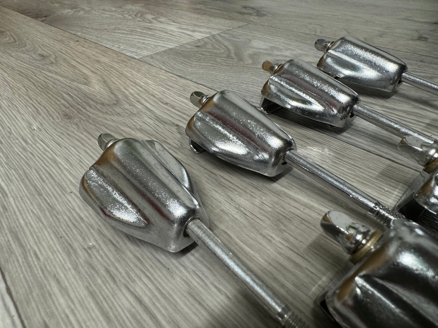 Set of tension rods and claws for a bass drum. Please check the sizes in the photos but generally they are generic to any drum. Perfect for spares or a project.