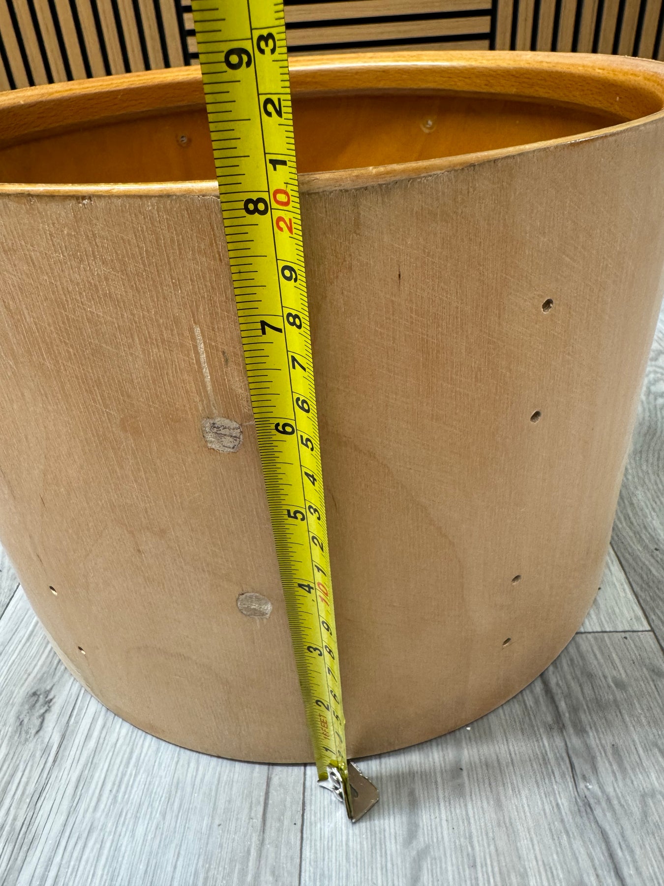 One bare wooden drum shell, ideal for a project or even for putting the mind to work and getting creative with it?