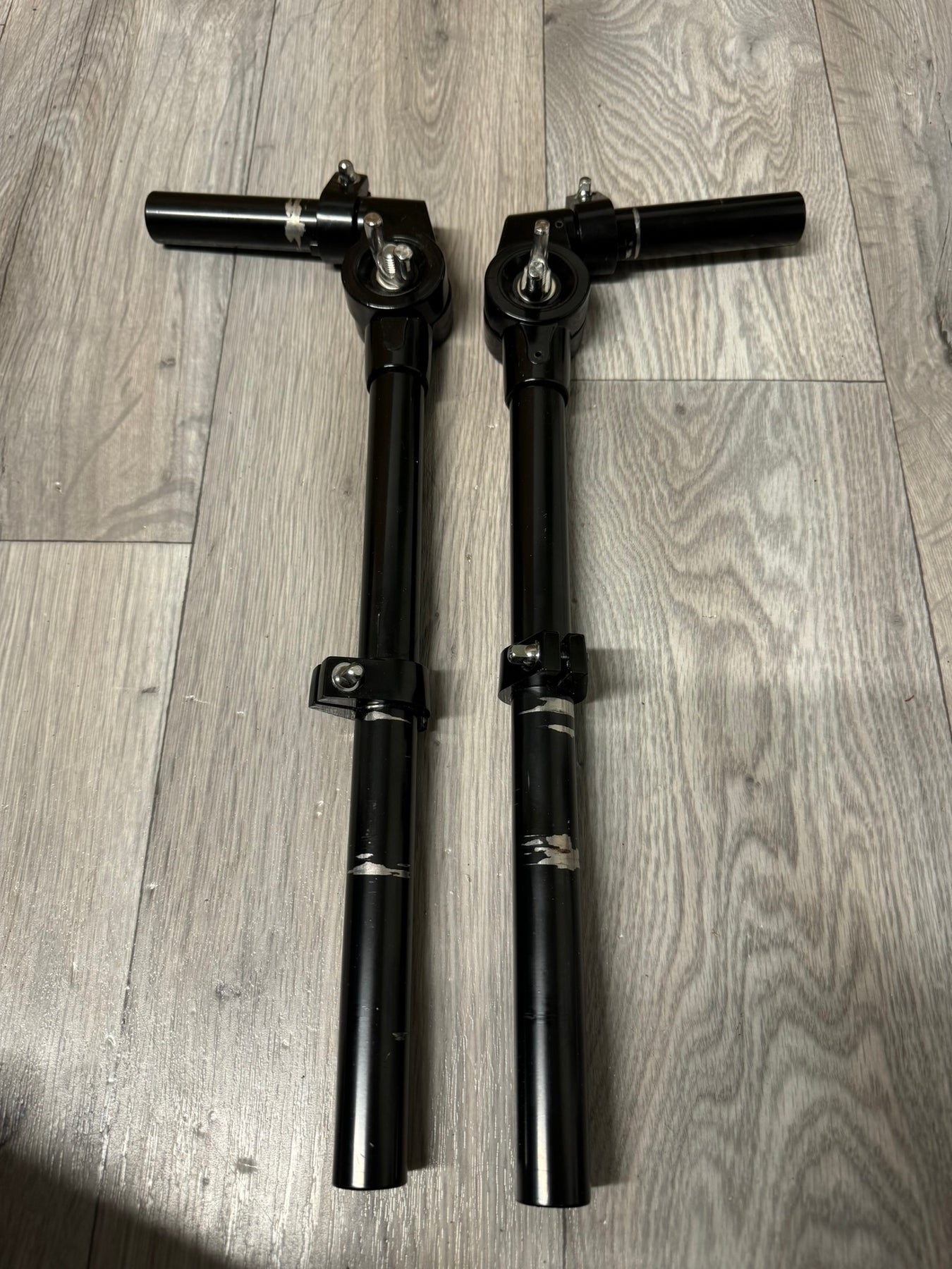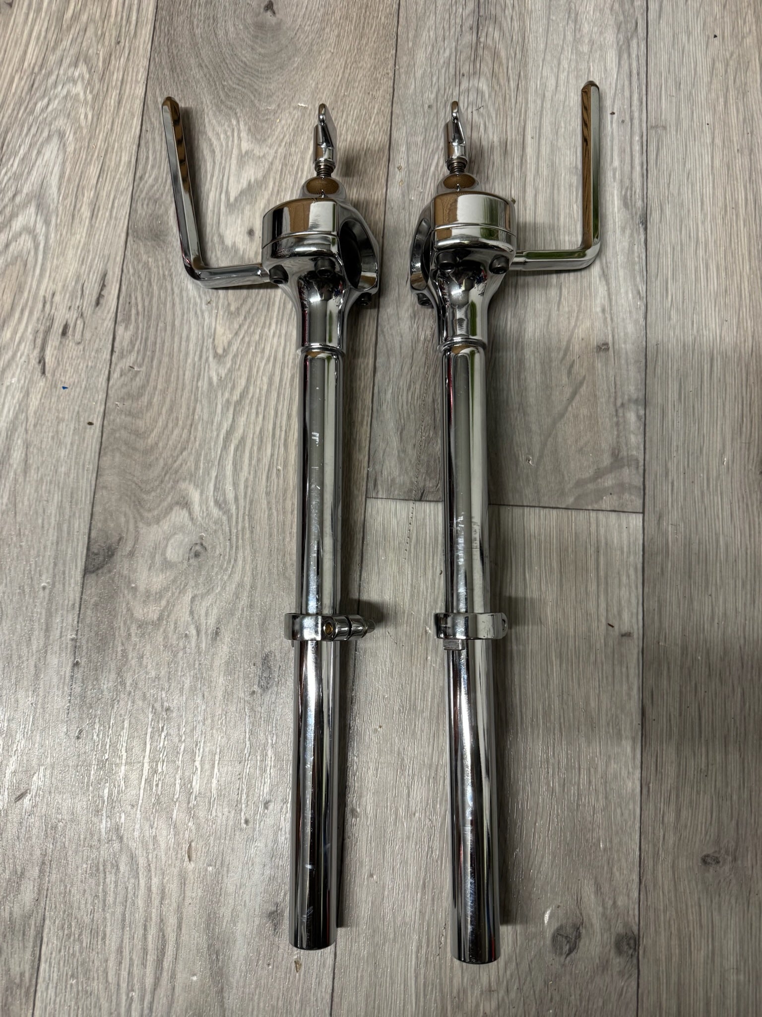 This is a pair of mounting arms, ideal for mounting additional Toms via a clamp system . The 22mm arms are generic fitting for the majority of drums (although please check before purchasing!!).
