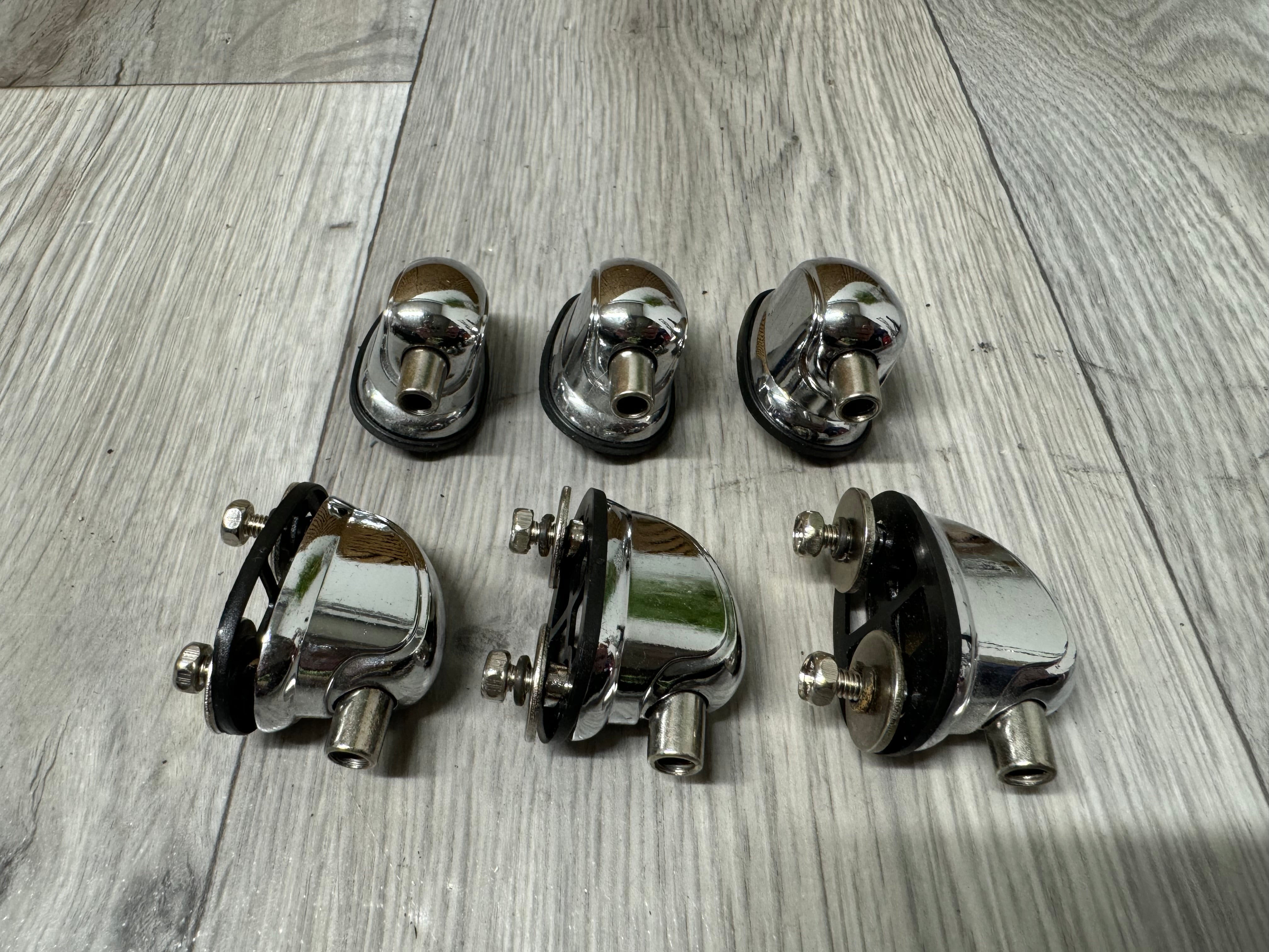 Set of 6 25mm Mapex Tom drum lugs. Ideal spares or replacement for your broken lugs, please check the measurements before purchase. They will fit any drum kit but new holes would have to be drilled for certain kits.