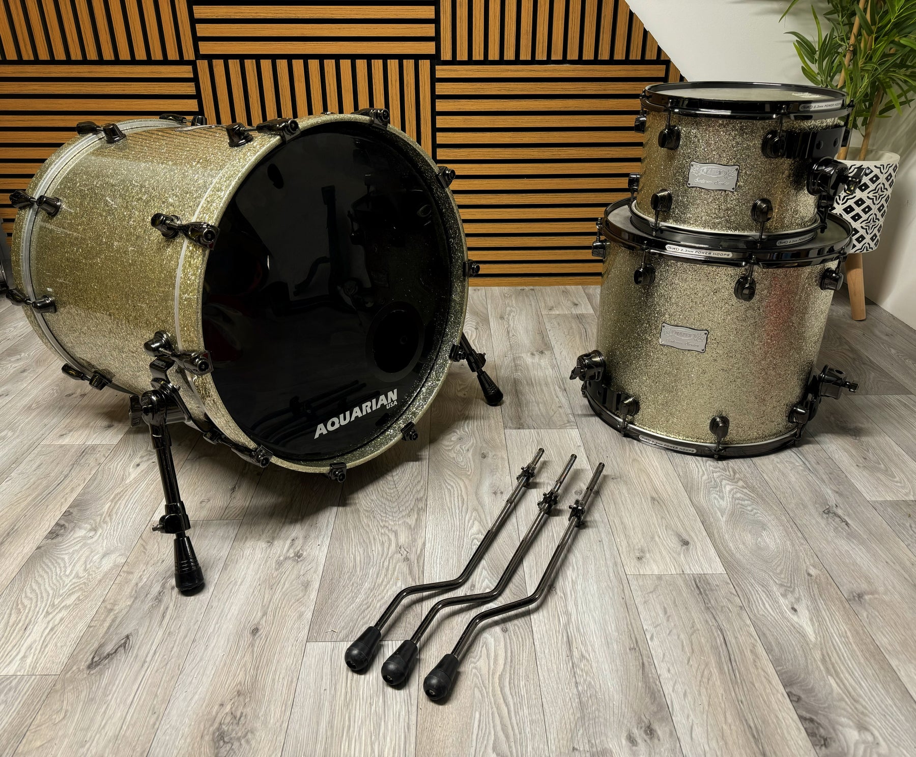 Fantastic sounding kit with superb Maple/Walnut shell construction! Consisting of the bass drum, floor tom and rack tom (no mount included).